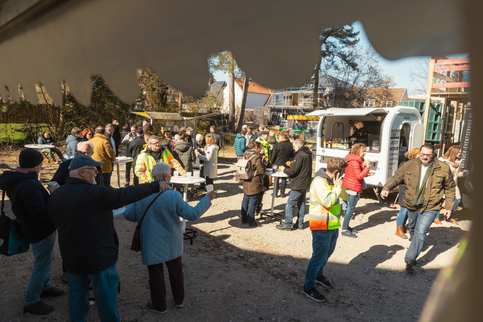 Für die feierliche Rede beim Richtfest stieg spar+bau-Vorstand Rainer Detjen auf das Gerüst des Rohbaus und bedankte sich herzlich bei allen Beteiligten. Detjen lobte den reibungslosen Baufortschritt und den gelungenen Entwurf: „Grundlegende Idee des Gebäudes ist die Laubengangerschließung, sodass dort Kommunikationsflächen entstehen. Denn das ist es ja, was eine Genossenschaft ausmacht: das Gemeinsame, das Miteinander, das Zueinanderfinden.“